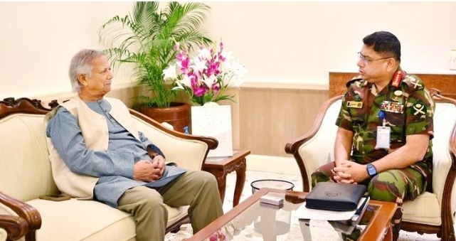 প্রধান উপদেষ্টার উপ-প্রেস সচিব আবুল কালাম আজাদ মজুমদার পাঠানো এক বিবৃতিতে এসব কথা জানানো হয়। বিবৃতিতে বলা হয়, প্রধান উপদেষ্টা সেনাবাহিনীর ভূমিকা সুসংহত করার প্রয়োজনীয়তার ওপর জোর দেন, যার মধ্যে একটি সুস্পষ্ট কমান্ড কাঠামো এবং নির্বাচন পর্যন্ত আগামী মাসগুলোতে সব বাহিনীর ঘনিষ্ঠ সমন্বয় অন্তর্ভুক্ত।