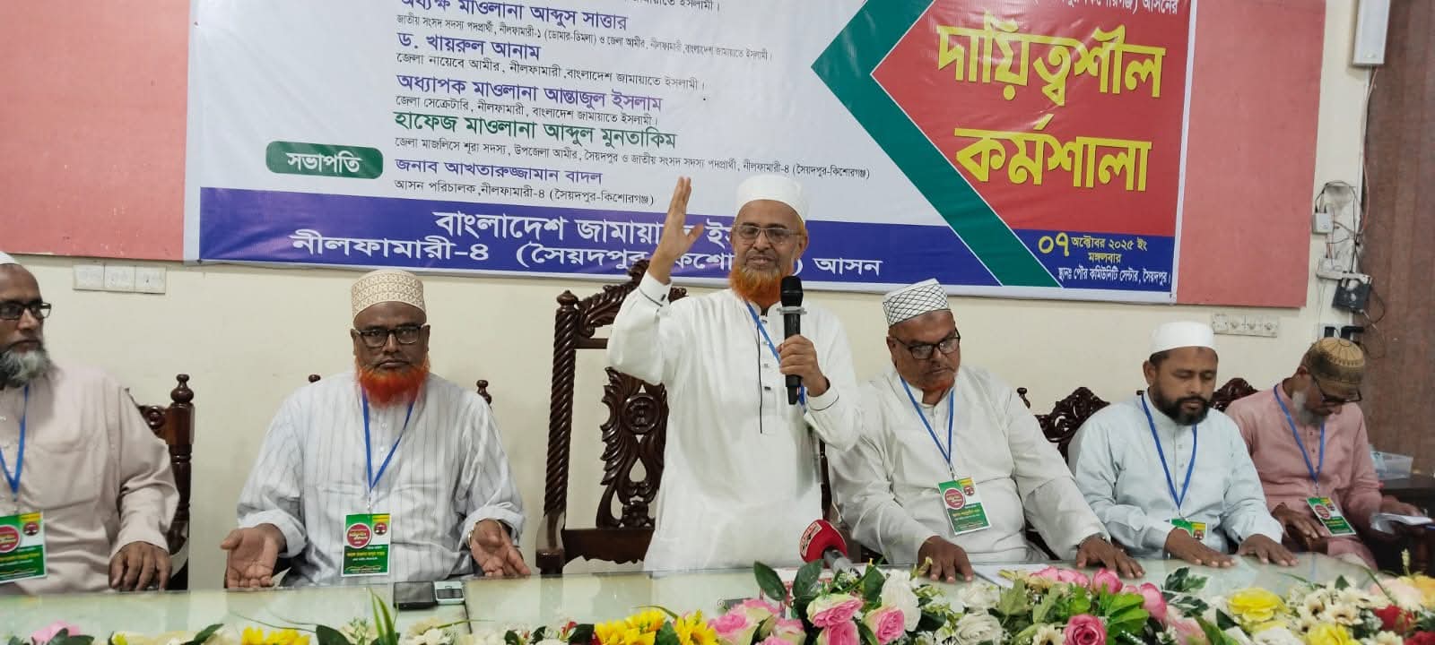 মঙ্গলবার (৭ অক্টোবর) সকাল ৮টা থেকে ১০টা পর্যন্ত নীলফামারী জেলার সৈয়দপুর পৌর কমিউনিটি সেন্টার হলরুমে উপজেলা ও শহর জামায়াতে ইসলামীর উদ্যোগে আয়োজিত দায়িত্বশীল কর্মশালায় প্রধান অতিথির বক্তব্যে তিনি এসব কথা বলেন।