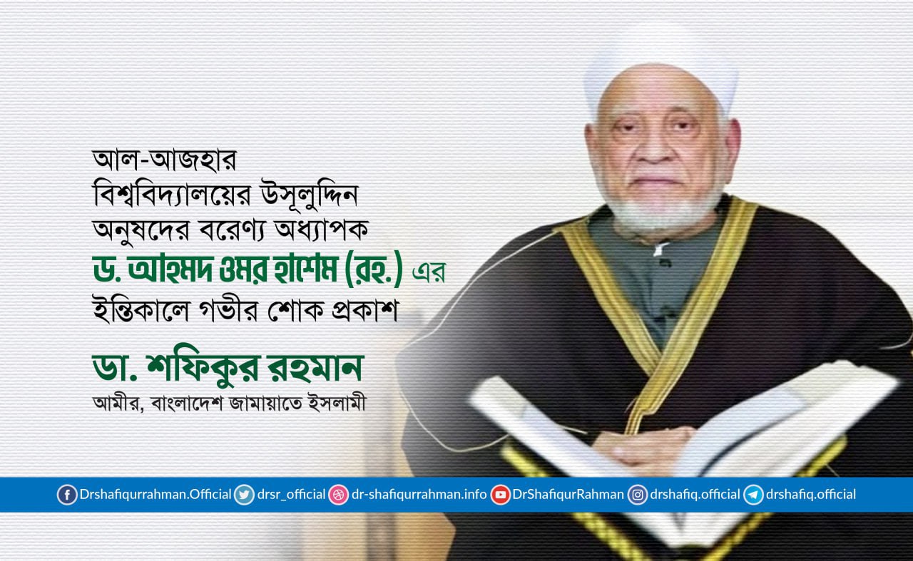 মিসরের আল-আজহার বিশ্ববিদ্যালয়ের উসূলুদ্দিন অনুষদের বরেণ্য অধ্যাপক, হাদিস বিভাগের প্রখ্যাত পণ্ডিত ড. আহমদ ওমর হাশেম (রহ.) এর ইন্তিকালে গভীর শোক প্রকাশ করে বাংলাদেশ জামায়াতে ইসলামীর আমীর ডা. শফিকুর রহমান ৮ অক্টোবর এক শোকবাণী প্রদান করেছেন।