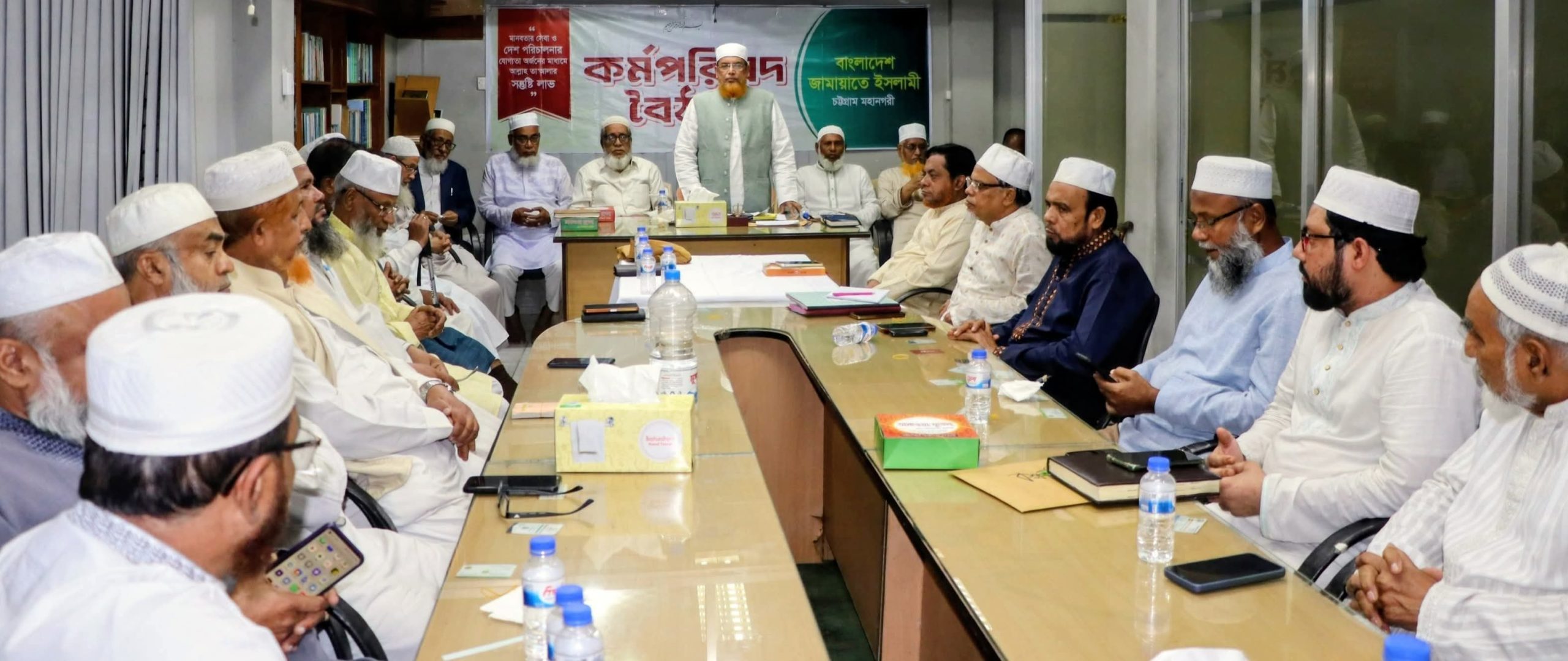 আজ মঙ্গলবার সন্ধ্যায় বাংলাদেশ ইসলামী একাডেমি (বিআইএ) কনফারেন্স রুমে চট্টগ্রাম মহানগরী জামায়াতের কর্মপরিষদ বৈঠকে কেন্দ্রীয় মজলিসে শূরার সদস্য ও চট্টগ্রাম মহানগরীর আমীর নজরুল ইসলামের সভাপতিত্বে ও নগর সেক্রেটারি অধ্যক্ষ মোহাম্মদ নুরুল আমিনের সঞ্চালনায় কেন্দ্রীয় নির্বাহী পরিষদ সদস্য ও সহকারী সেক্রেটারি জেনারেল মুহাম্মদ শাহজাহান প্রধান অতিথির বক্তব্যে তিনি উপরোক্ত কথা বলেন।