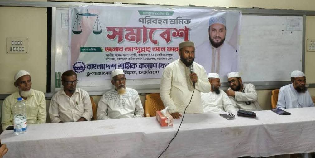 চকরিয়া উপজেলার ডুলাহাজারা সাংগঠনিক ইউনিয়ন শ্রমিক কল্যাণ ফেডারেশনের উদ্যোগে এক পরিবহন শ্রমিক সমাবেশ বুধবার (১৯ নভেম্বর) সন্ধ্যা ৬টায় ডুলহাজারা মারুফিয়া মাদরাসা মিলনায়তনে অনুষ্ঠিত হয়েছে।