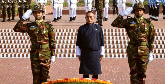 বাংলাদেশে সফররত ভুটানের প্রধানমন্ত্রী শেরিং তোবগে শনিবার (২২ নভেম্বর) সাভারের জাতীয় স্মৃতিসৌধের মুক্তিযুদ্ধের শহীদদের প্রতি শ্রদ্ধা জানিয়ে স্মৃতিসৌধের বেদিতে ফুল দিয়ে শ্রদ্ধা নিবেদন করেছেন।