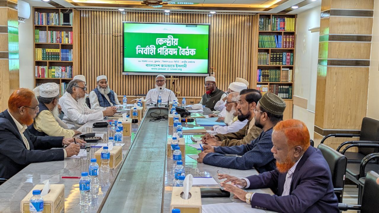আজ ২৬ নভেম্বর বাংলাদেশ জামায়াতে ইসলামীর আমীর ডা. শফিকুর রহমানের সভাপতিত্বে কেন্দ্রীয় নির্বাহী পরিষদের বৈঠক অনুষ্ঠিত হয়েছে। বুধবার বিকেল ৪টা ৩০ মিনিটে কেন্দ্রীয় কার্যালয়ে অনুষ্ঠিত এ বৈঠকে নায়েবে আমীরগণ, সেক্রেটারি জেনারেল এবং সহকারী সেক্রেটারি জেনারেলগণসহ কেন্দ্রীয় নির্বাহী পরিষদের সদস্যবৃন্দ অংশগ্রহণ করেন।