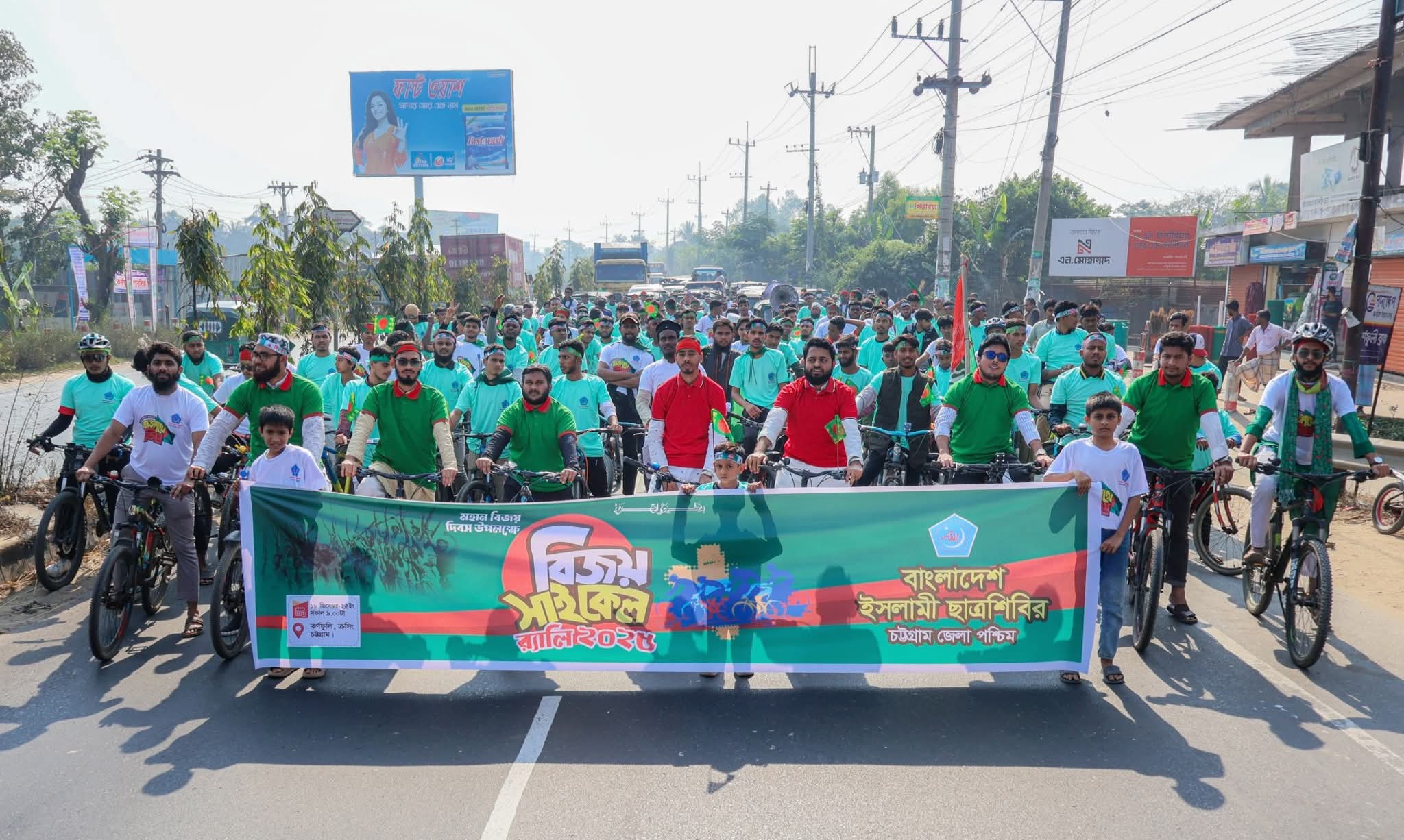 মহান বিজয় দিবস উপলক্ষে আজ ১৬ ডিসেম্বর সকাল ৭টায় বাংলাদেশ ইসলামী ছাত্রশিবির চট্টগ্রাম জেলা পশ্চিমের উদ্যোগে পটিয়ার রাজপথে অনুষ্ঠিত হয়েছে ব্যতিক্রমধর্মী *‘বিজয় সাইকেল ম্যারাথন উইথ শিবির’*। পটিয়া আদর্শ উচ্চ বিদ্যালয় প্রাঙ্গণ থেকে শুরু হয়ে মইজ্জেরটেক এলাকায় সমাবেশের মাধ্যমে কর্মসূচিটি সম্পন্ন হয় এবং পরে একই পথে পুনরায় যাত্রা শেষ হয়।