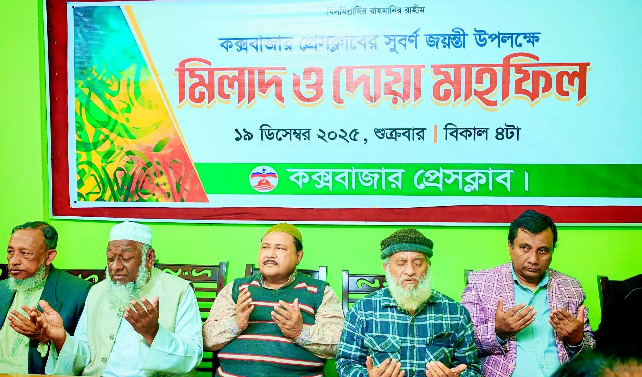 কক্সবাজার প্রেসক্লাবের ৫০ বছর পূর্তি উপলক্ষ্যে ক্লাব মিলনায়তনে মিলাদ ও দোয়া মাহফিল অনুষ্ঠিত হয়েছে।