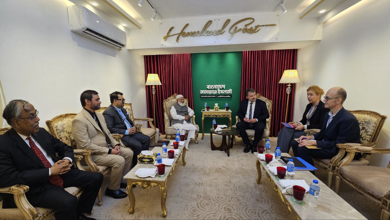 ১২ জানুয়ারি (সোমবার) দুপুর ১২টায় বাংলাদেশ জামায়াতে ইসলামীর সম্মানিত আমীর ডা. শফিকুর রহমানের সঙ্গে তাঁর বসুন্ধরার কার্যালয়ে ইউরোপীয় ইউনিয়নের (ইইউ) নির্বাচন পর্যবেক্ষণ মিশনের প্রধান পর্যবেক্ষক ও ইউরোপীয় পার্লামেন্টের সদস্য ইভারস আইজাবস এর নেতৃত্বে ৩ সদস্য বিশিষ্ট একটি প্রতিনিধি দল সৌজন্য সাক্ষাৎ করেন।