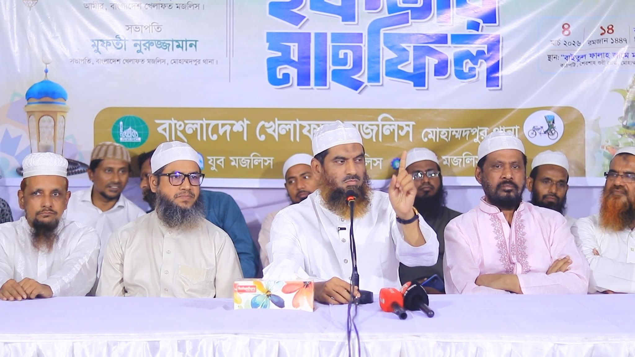 বাংলাদেশ খেলাফত মজলিস মোহাম্মদপুর থানা ও সহযোগী সংগঠনগুলোর উদ্যোগে ইফতার মাহফিল অনুষ্ঠিত হয়েছে। মোহাম্মদপুরস্থ বায়তুল ফালাহ মিলনায়তনে বাংলাদেশ খেলাফত মজলিস মোহাম্মদপুর থানা সভাপতি মাওলানা নুরুজ্জামানের সভাপতিত্বে প্রধান অতিথি ছিলেন আমীরে মজলিস আল্লামা মামুনুল হক।