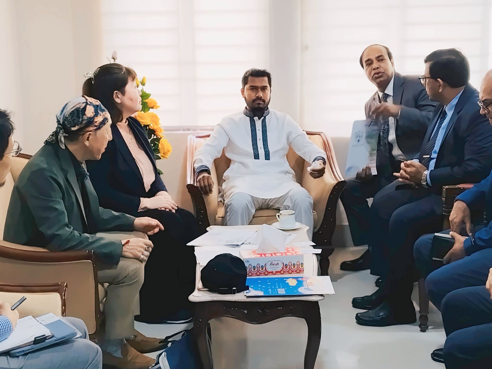 বাংলাদেশে নিযুক্ত জাপানের একটি প্রতিনিধি দল আজ প্রবাসী কল্যাণ ও বৈদেশিক কর্মসংস্থান মন্ত্রণালয়ের প্রতিমন্ত্রী মোঃ নুরুল হকের সাথে তাঁর দপ্তরে সৌজন্য সাক্ষাৎ করেন। প্রতিনিধি দলটি জাপানের ভাষা ও সংস্কৃতি শিক্ষা প্রদানের মাধ্যমে বাংলাদেশি শিক্ষার্থীদের জাপানে উচ্চশিক্ষা ও কর্মসংস্থানের সুযোগ তৈরিতে বিশেষ আগ্রহ প্রকাশ করেছেন।