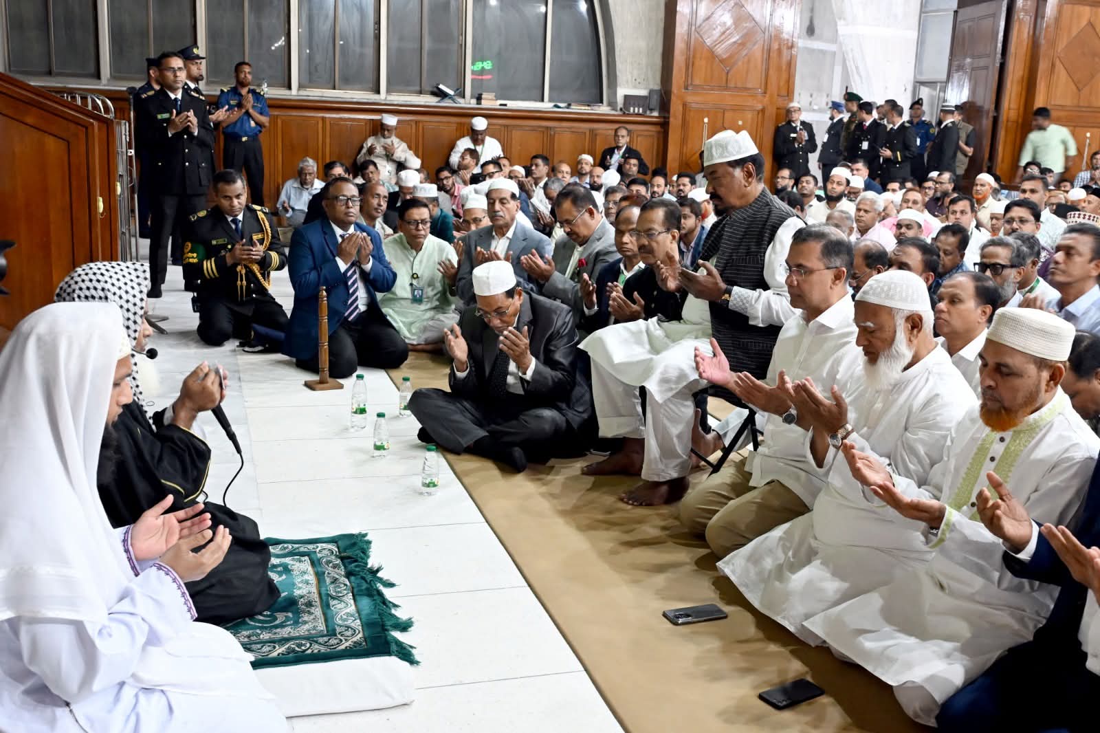 দোয়া ও মুনাজাত পরিচালনা করেন বাংলাদেশ জাতীয় সংসদ সচিবালয়ের পেশ ইমাম ক্বারী মোঃ আবু রায়হান।