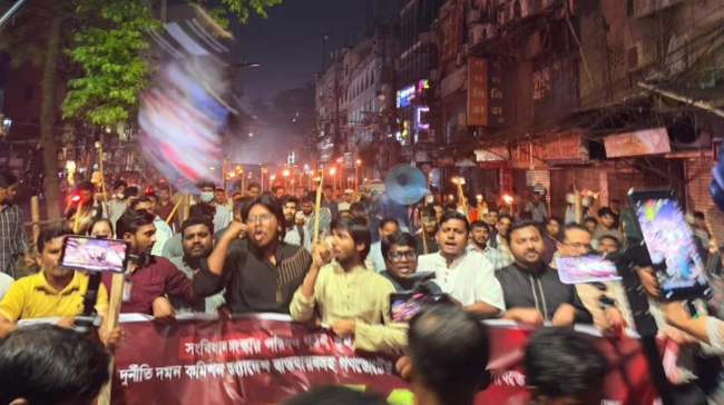 গণভোটের রায় দ্রুত বাস্তবায়নের দাবিতে রাজধানীর শাহবাগে মশাল মিছিল করেছে ‘গণভোটের রায় বাস্তবায়ন আন্দোলন’ নামের একটি প্ল্যাটফর্ম।