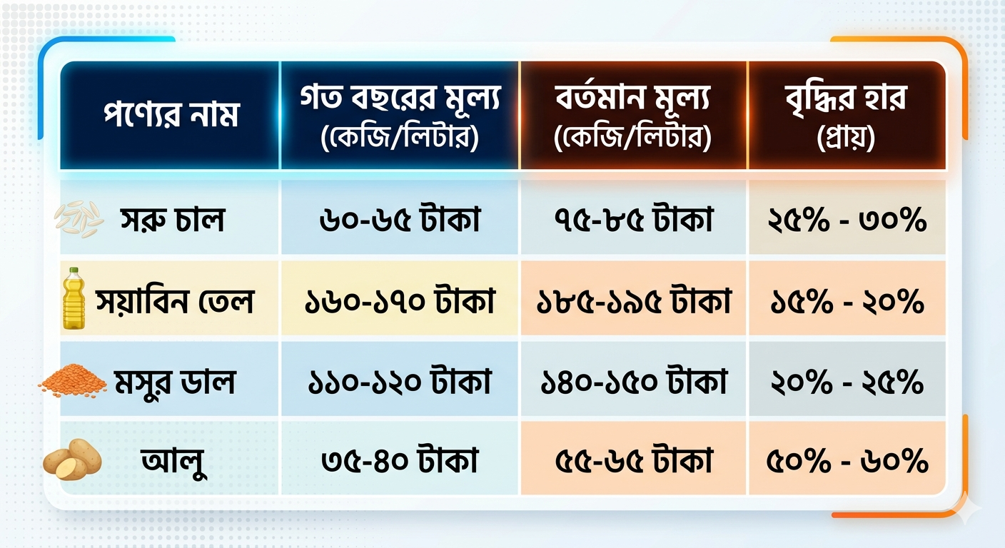 বর্তমানে নিত্যপণ্যের বাজারে যে অস্থিরতা বিরাজ করছে, তা কেবল কোনো একটি বিশেষ পণ্যের মধ্যে সীমাবদ্ধ নেই। চাল, ডাল, ভোজ্যতেল, চিনি থেকে শুরু করে প্রতিটি অতি-প্রয়োজনীয় পণ্যের দাম সাধারণ মানুষের ক্রয়ক্ষমতা অতিক্রম করছে। এই পরিস্থিতিতে সবচেয়ে বেশি সংকটে পড়েছেন নির্দিষ্ট আয়ের মধ্যবিত্ত এবং নিম্ন-মধ্যবিত্ত পরিবারগুলো।
