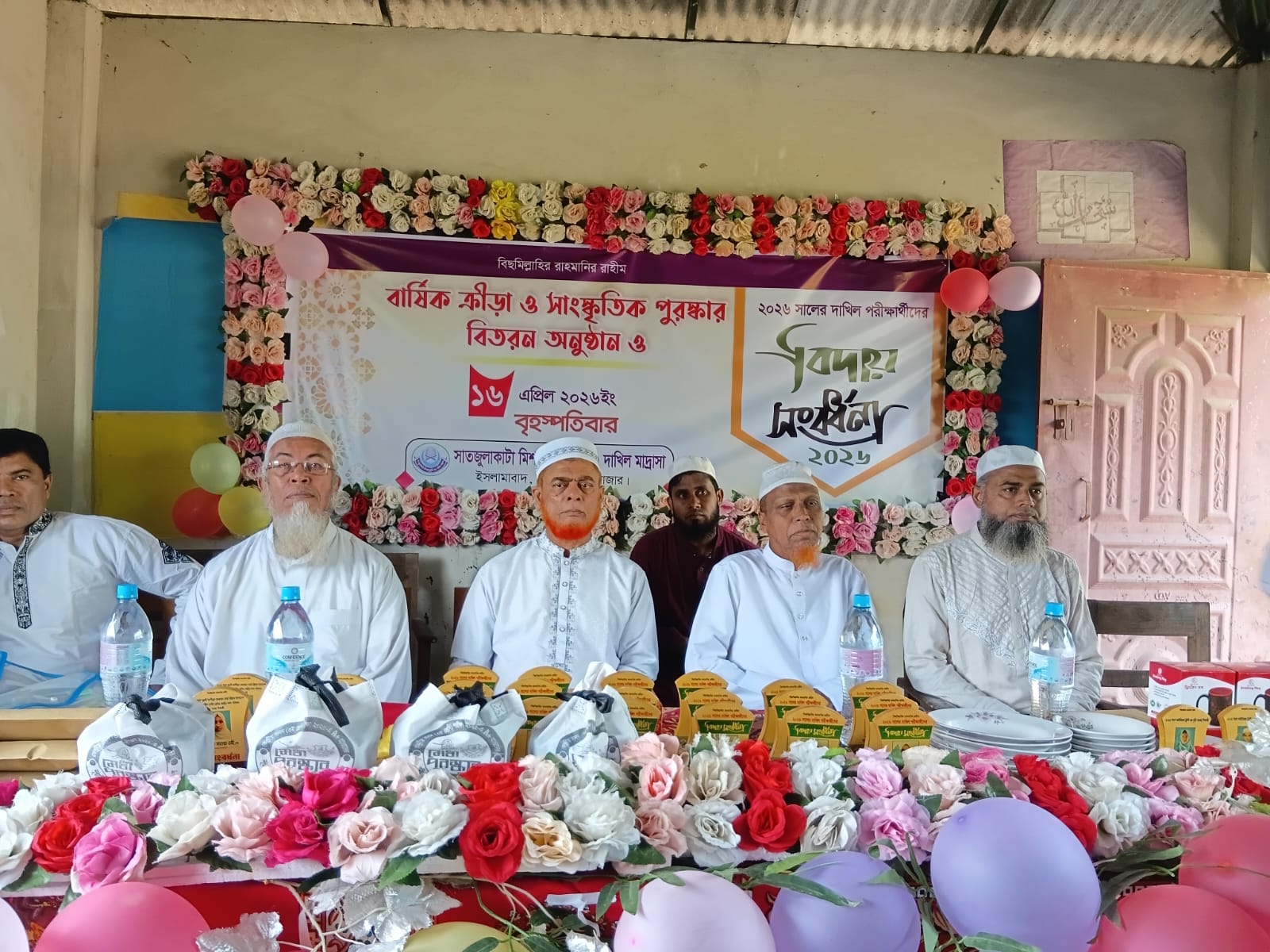 কক্সবাজার জেলা, ঈদগাঁও উপজেলা, ইসলামাবাদ সাতজুলাকাটা মিশকাতুন্নবী দাখিল মাদ্রাসায় ২০২৬ সালের দাখিল পরীক্ষার্থীদের বিদায়ী দোয়া, ক্রীড়া ও সংস্কৃতি প্রতিযোগিতার পুরস্কার বিতরণ অনুষ্ঠান সম্পন্ন হয়েছে।