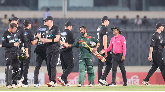 এদিন আগে ব্যাট করে সুবিধা করতে পারেনি কিউইরা, নাহিদ রানার বিধ্বংসী বোলিংয়ে ৪৮.৪ ওভারে ১৯৮ রানে গুটিয়ে যায় তাদের ইনিংস। জবাবে ৩৫.৩ ওভারে জয়ের বন্দরে পৌঁছে যায় বাংলাদেশ।